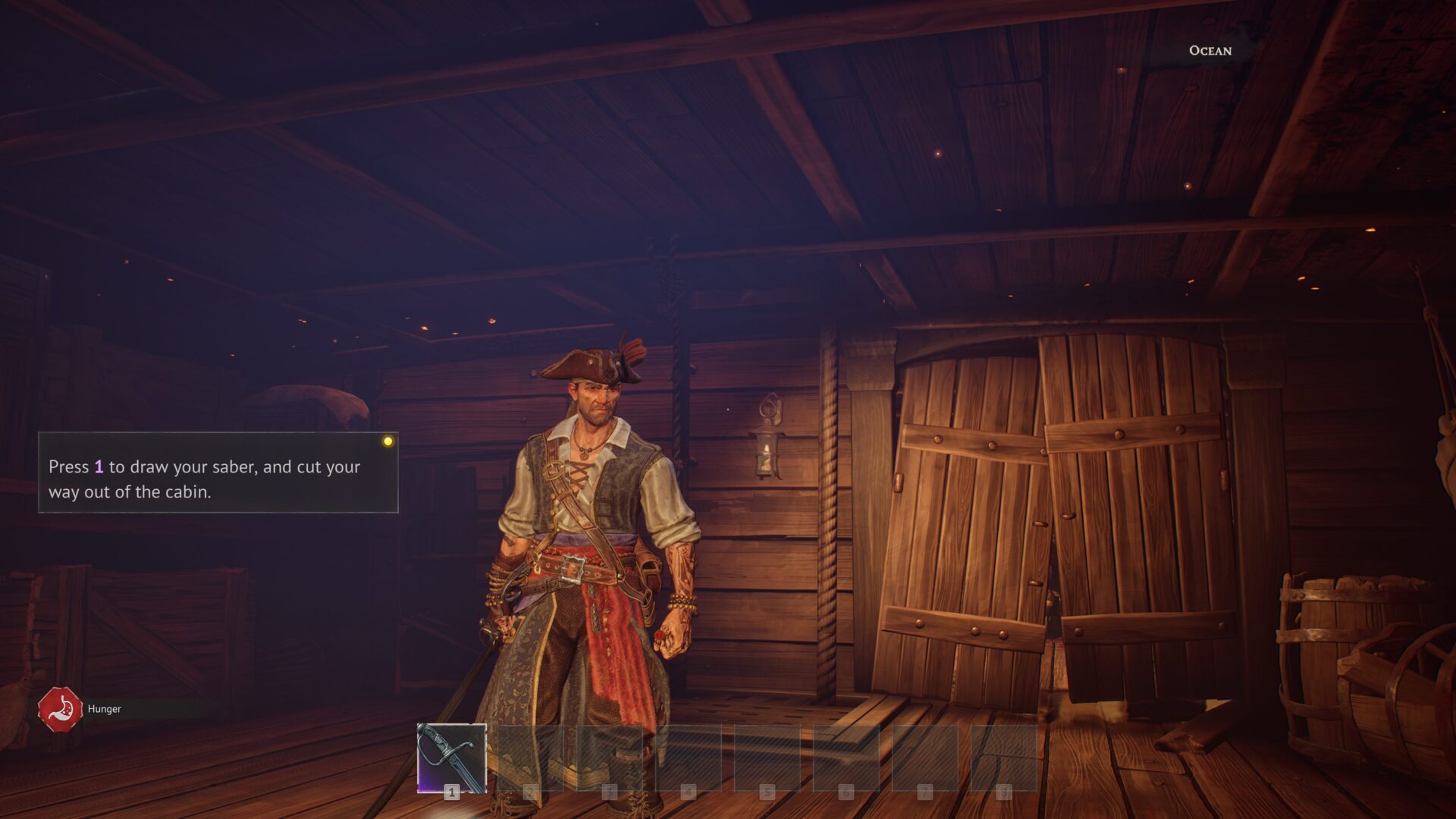 [マウスの左クリック]でサーベルで攻撃をすることが可能なので、部屋の扉を壊して先へ進みましょう。