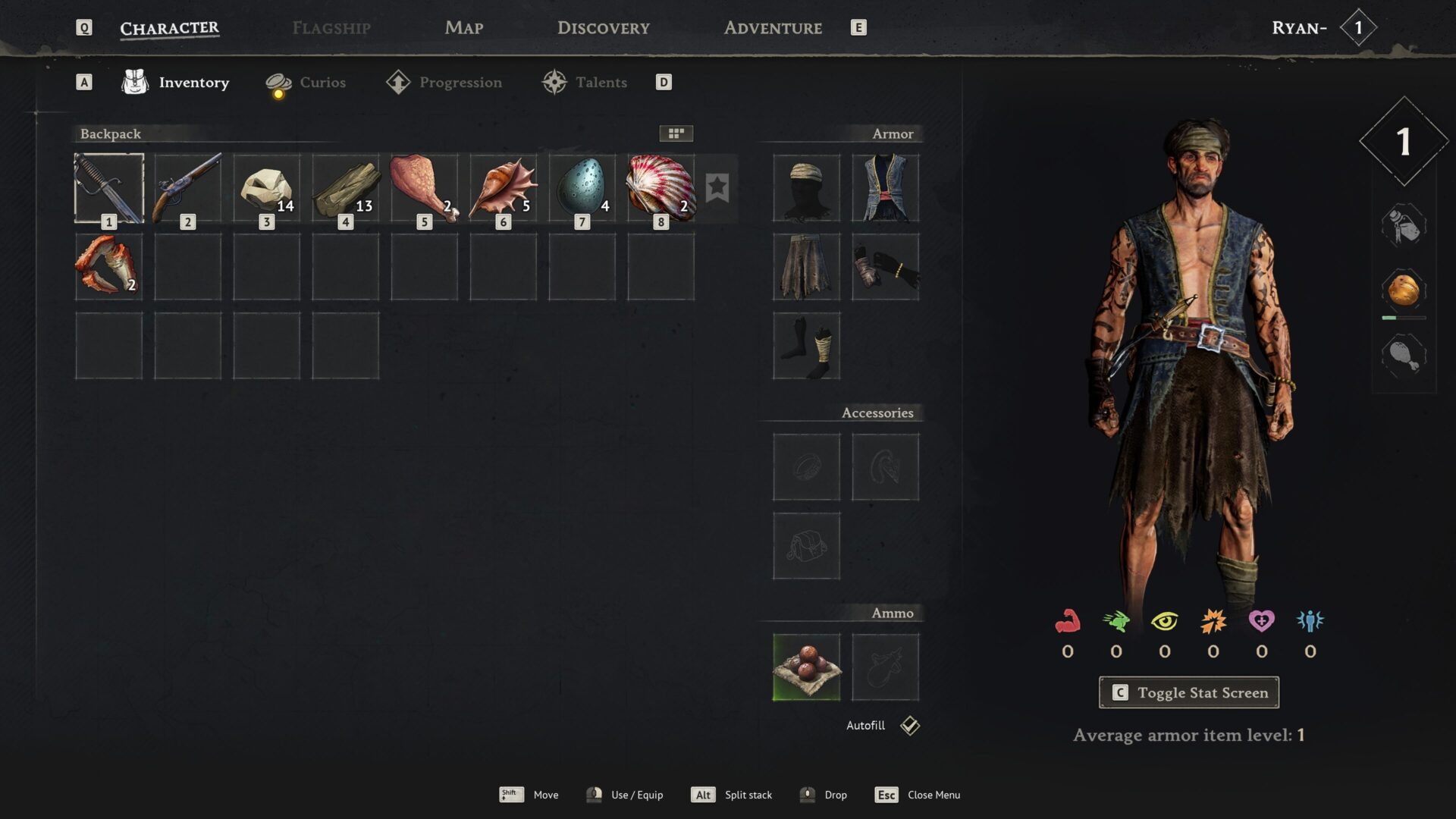 これらを集めて道具をクラフトします。[Tab]ボタンでインベントリーを開くことが可能でしょう。