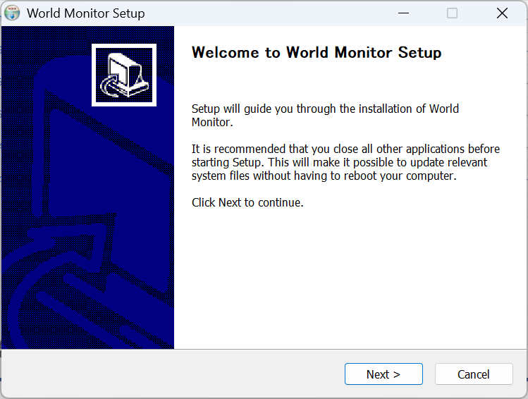 World-Monitor_x.x.x_x64.exe(初心者向け・推奨)をクリック