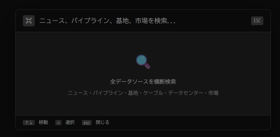 検索窓が表示され、国名、ニュースのキーワード、インフラ施設などを素早く検索してジャンプできます。